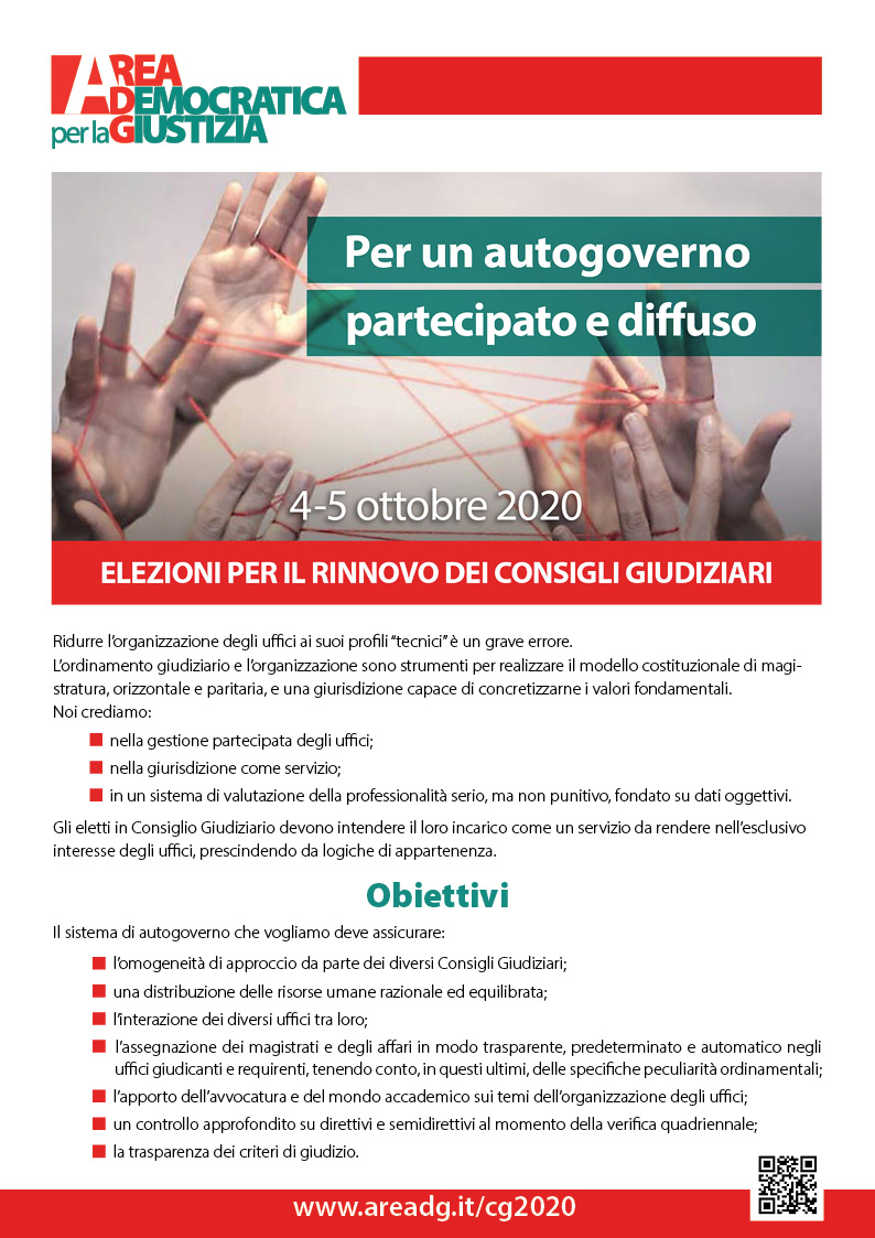 L’ordinamento giudiziario e l’organizzazione sono lo strumento indispensabile per realizzare, attraverso la partecipazione, il modello costituzionale di magistratura orizzontale e paritaria e una giurisdizione capace di concretizzarne i valori fondamentali.